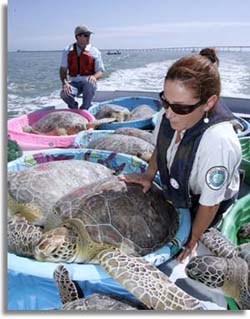 Wildlife Service helped transport many of the turtles to larger facilities